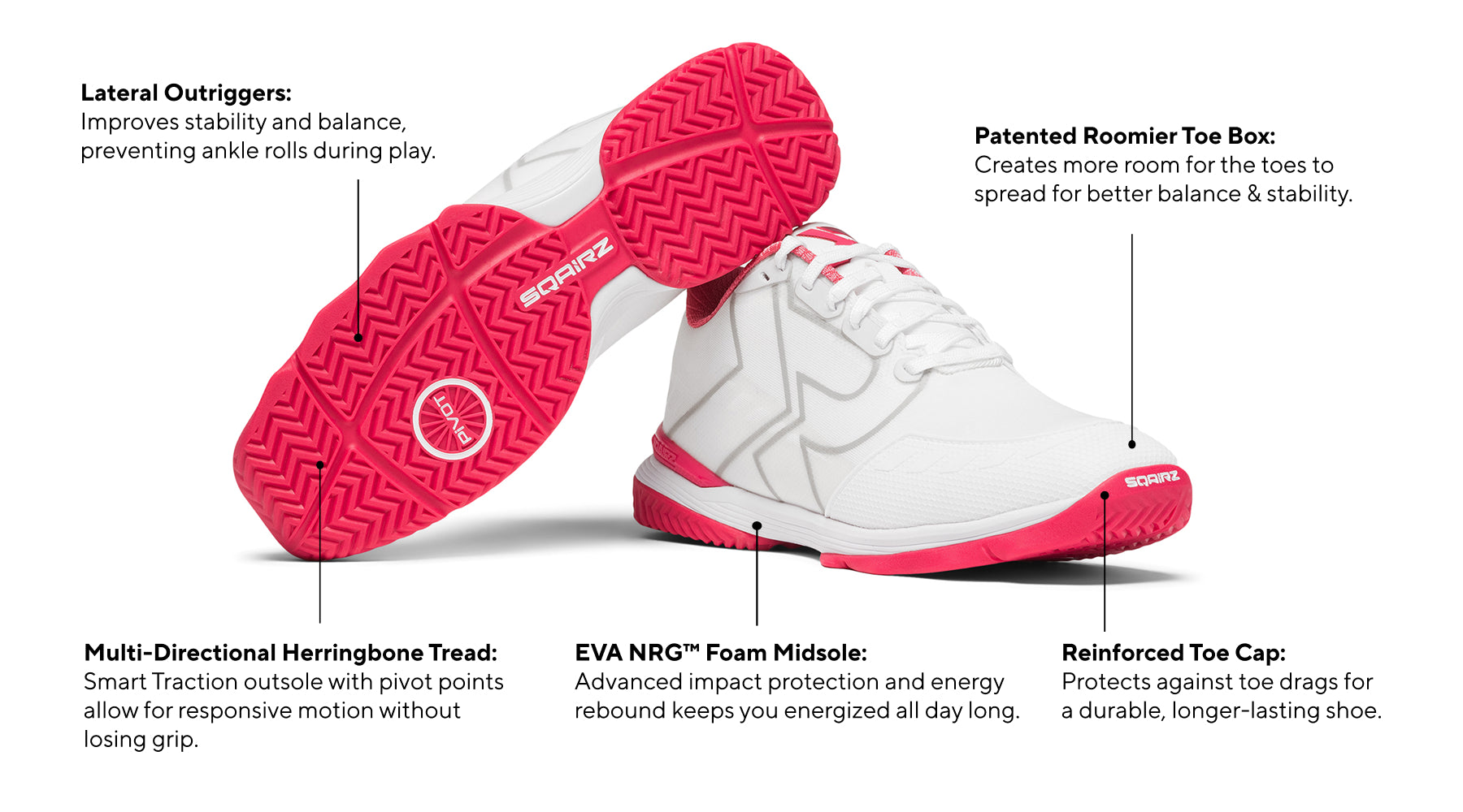 Her introduction to SQAIRZ XRZ™ came from an unexpected place. “I was listening to Zane Navratil on his Pickleball podcast, and he was talking about these shoes. I had never heard of the brand, but I knew I needed a second pair of shoes for an upcoming tournament, and I ordered them. The difference was immediate. There was no break-in period. My toes don’t hurt anymore.”