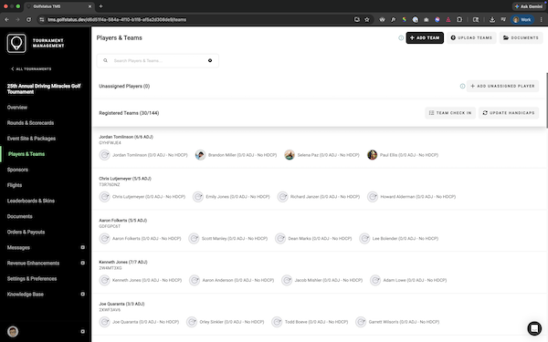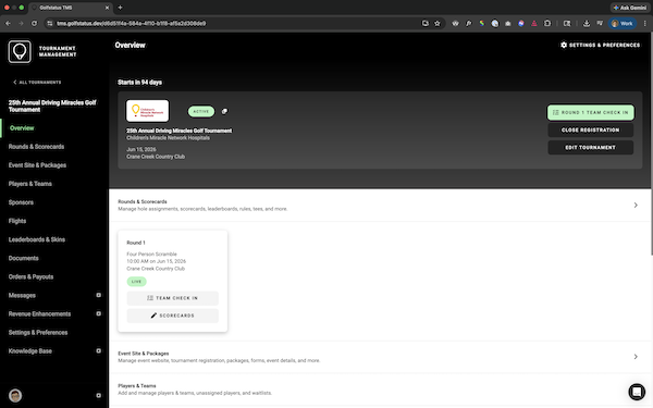 GolfStatus’ new check-in feature addresses this challenge by embedding the entire process directly into its tournament management software. Team and player information is centralized, and check-ins update instantly across all connected devices with no refreshing required.