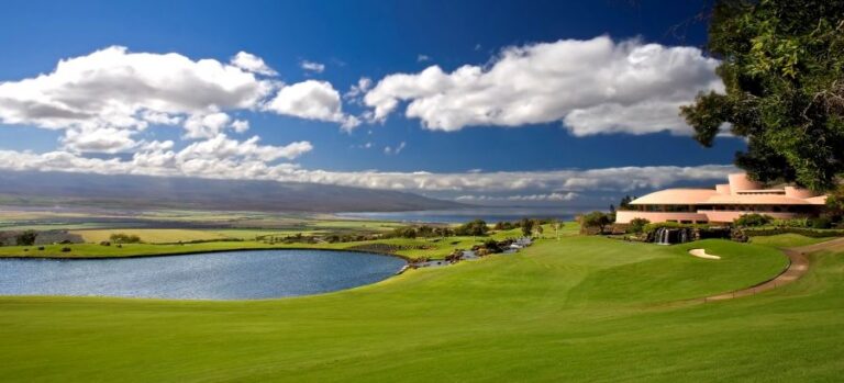 The King Kamehameha Golf Club, recognized as Maui’s premier private club, offers a challenging 18-hole, par-72, 7,060-yard golf course with sweeping bi‑coastal views that create a striking championship setting and a spectacular Frank Lloyd Wright–designed clubhouse.