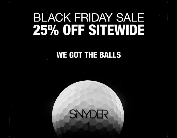 Miami, FL. From Nov 20th–30th, get 25% OFF our entire collection of precision-engineered golf balls, high-performance gloves, and tour-grade accessories. Built for players who value every shot. Shop SNYDER Golf’s biggest sale of the year: https://snydergolfusa.com/