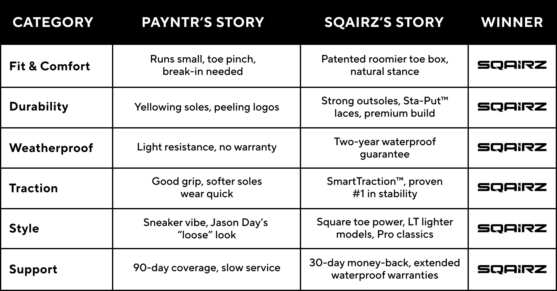 That’s the real test of a golf shoe. Both Payntr and SQAIRZ claim to deliver performance. The difference? One brand has the science and results to prove it. The other has been swiping our lines — repackaging our innovation and hoping golfers don’t notice.