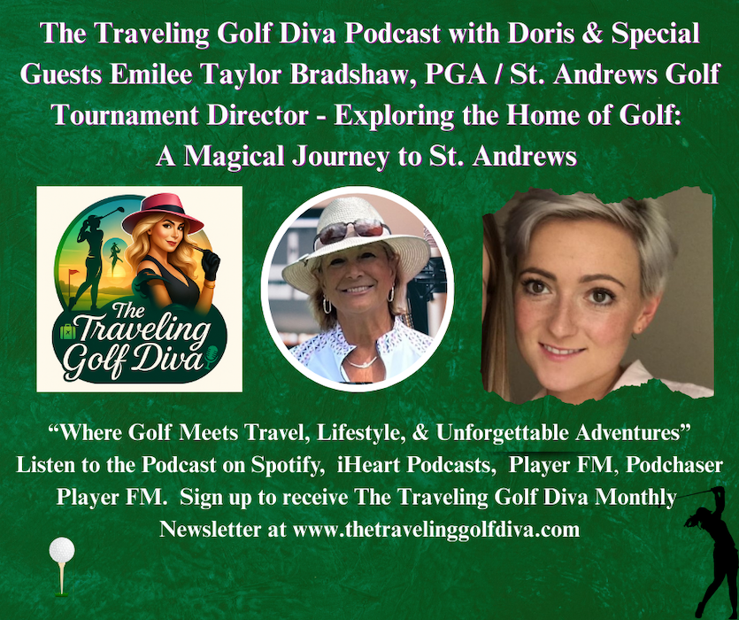 Join Doris Muscarella as she transports listeners to the birthplace of golf – St. Andrews, Scotland. In this captivating episode, Special Guest Emilee Taylor Bradshaw joins from the iconic town to dive deep into the magic of the Old Course and the surrounding links. From legendary history and challenging plays to insider tips for visitors, this conversation celebrates the timeless allure of Scottish golf, the role of women in the game, and unforgettable travel adventures. Perfect for golf lovers dreaming of their next bucket-list trip.