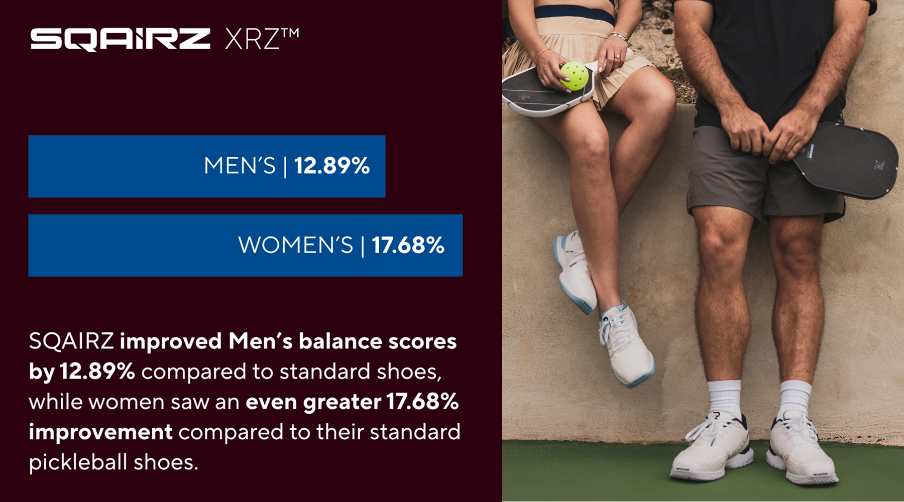 In independent balance testing, players wearing SQAIRZ improved their stability by 15.5% on average compared to leading athletic brands like ASICS, HOKA, and HEAD — with some showing improvements of over 30%.