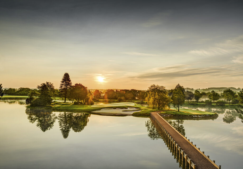 - the flag sits on the edge of the green